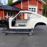Original matching numbers 1970 model 911 E build in 12/69. Original color is ivory white (1111/131) with beige interior. This is one of the last Karmann build 1970 911 E cars. The 2,2 liter 911 E engine gave 155bhp. This car has been in fully drivable condition before we started the restoration. The chassis was blasted to bare metal, then welded and painted to the original colour. The chassis is now ready, the engine and transmission are fully rebuild and restored also from outside. Interior will have a complete refurbishment and Lakewell components are ready. The restoration project is now in the final stage of assembly. The car has been sold in December 2025 and it will be ready and delivered in September 2026.