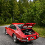 Early 1966, matching numbers 0-Programme 911 confirmed by Porsche Certificate of Authenticity and original Kardex. The car has its original 2,0 liter 901/01 engine with Solex 40-PI carburators. This car is produced in early 1966 and it is one of the last 911 with 901/01 engine with Solex carburators before the new 901/05 engine with Weber carburators was launched in March 1966. Actually this car has the 3rd last engine (903907) with Solex carburators as the last Solex engine number was 903910. The car has its original 902/1, 5-speed transmission with Löbro drive axels. It has wooden dashboard, wooden steering wheel and 0-programme 911 emblems in engine lid and dashboard. Radio antenna and Blaupunkt Frankfurt radio. Original matching numbers working Webasto. Retrofitted 11kg steel weights in the pumpers.