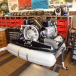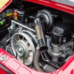 The new 911 had a new 6 cylinder 2,0 liter boxer engine (901/01) with Solex carburators producing 130hp. The typical features of 1965 0-Programme 911´s were wooden dashboard, 5 green numbered instruments, 911 label on the dashboard and in the engine lid, 4,5 *15 steel wheels, 4 screw horn grills, small Durant mirror, Blaupunkt radio and Hella 128 fog lamps.