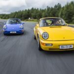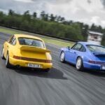This car is a ultra rare 964 C4 Lightweight /Lightbau. It is one of the only 22 super light, 4 wheel drive 964 racing cars build by Porsche Customer Racing Department under leadership of Jurgen Barth in 1990/1992. Each Carrera C4 LW started as a bare 964 bodysell which was rewelded in Weissach. The aluminium doors and front lids were installed. The car got plastic side windows and lightweight door panels. The engine was 3,6 liter twin plug engine with 265 bhp. The 4 wheel drive system came from 953 Paris-Dakar car and the suspension from 964 CUP cars. This 964 C4 LW weighted only 1095 kg. Jurgen Barth drowe the car himself for Carrera Classic at Botniaring in summer 2015.